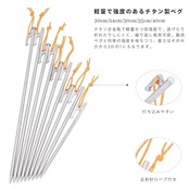 【軽量で強度のあるチタン製ペグ】:チタン合金製で軽量かつ高強度で、曲げたり折れたりしにくく、繰り返し使用可能。鍛造ペグと同等の強度を保ちつつ、重さはその半分から3分の1にもなります。