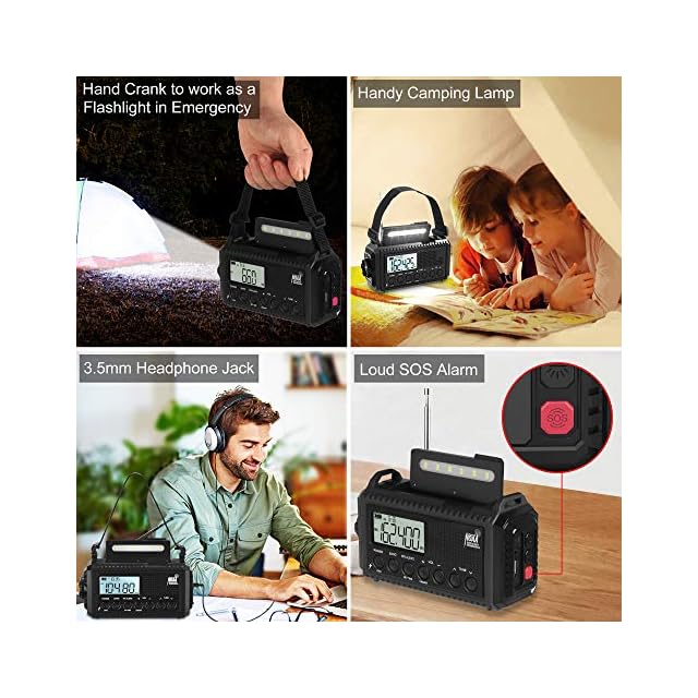 【5000mAh超大容量電池&5つの給電方式、災害などの緊急時に役立ちます】電力を気にしないでください!該当防災ラジオには5つの充電方法があります。ハンドクランク、ソーラーパネル、マイクロUSBケーブル、単4電池(別売)、ACアダプターがバックアップ電源として機能し、防災ラジオをいつでも携帯できるようにします。そしてどこでも!ハンドクランクとソーラーパネルはどちらも、ラジオ、ライト、SOSアラームを必要なときにすぐに使える状態に保つのに十分な電力を再生することができます。内臓充電式電池と単4乾電池3本(別売)で、電力を回生できないときでも確実に電力を供給できます。マイクロUSBケーブルでハンドクランクラジオ(充電式電池は含まれています)を充電できます。 (注:ACアダプターは含まれていません)