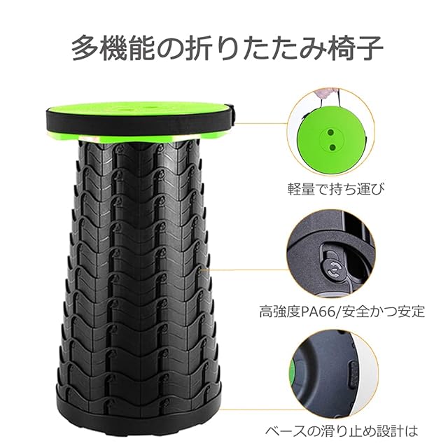 SEVNDE 折りたたみ椅子 アウトドア チェア 伸縮式 キャンプ スツール 軽量 持ち運び【耐荷重180kg】一秒開閉でき 高さ調整可能 6.5~45cm 収納バッグ付き【意匠登録済】登山 釣り 行列待ち 運動会 室内 屋外 兼用 (グリーン)