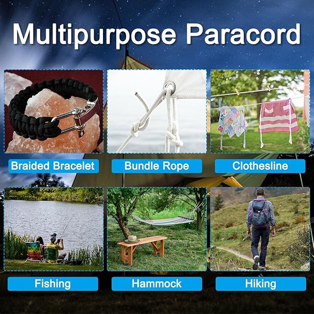 用途:反射ガイラインコードは、テント、タープ、レインフライ、オーニングなどの設置に最適で、キャンプ、ハイキング、狩猟、シューティングゲーム、コンサート、夜間ランニングなどのアウトドア活動に適しています。軽くて薄いロープは、ブレスレット、ネックレス、キーチェーンなどのDIY手作りにも使用できます。