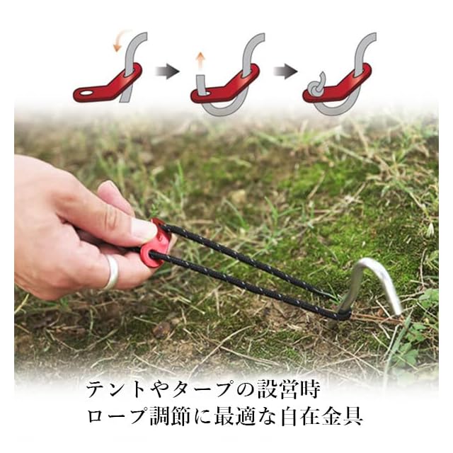 ・テントやターフの設営時、ロープ調節に便利で最適な自在金具です。 ・アルミ製で軽量で丈夫、持ち運びにもかさばりません。 【商品仕様】 カラー レッド 入り数 10個