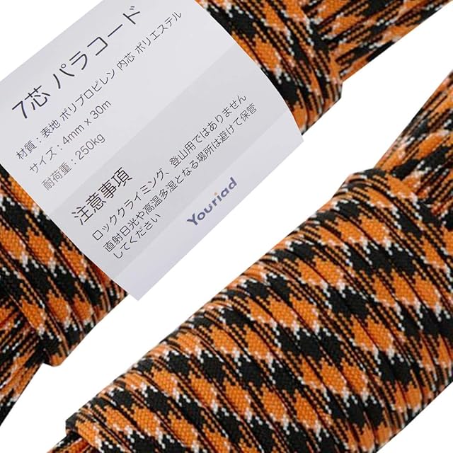 【色々な利用場所】キャンプ、アウトドア、狩猟、ハイキングおよび様々な野外活動でご利用いただけます。テントやタープのガイロープとして使用する場合は、ご利用しやすい長さでカットした後、ロープの先端はライター等で炙って(焼き止めして)ご使用下さい。外皮と内芯に異種素材を使用することで、耐摩耗性と引っ張り強度を増強します。吹雪や台風期間の荷物を固定などの場合は、数本を束ねて利用してください。