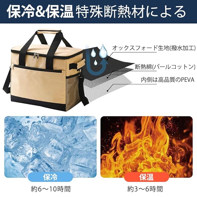 【快適なデザイン】:丈夫で耐久性のあるクーラーバッグ、折りたたんで収納でき、持ち運びが簡単です。冷蔵時間:約6〜10時間(保冷剤なし)、冷たさを長時間保つ場合は保冷剤を使用してください;保温時間:約3〜6時間。