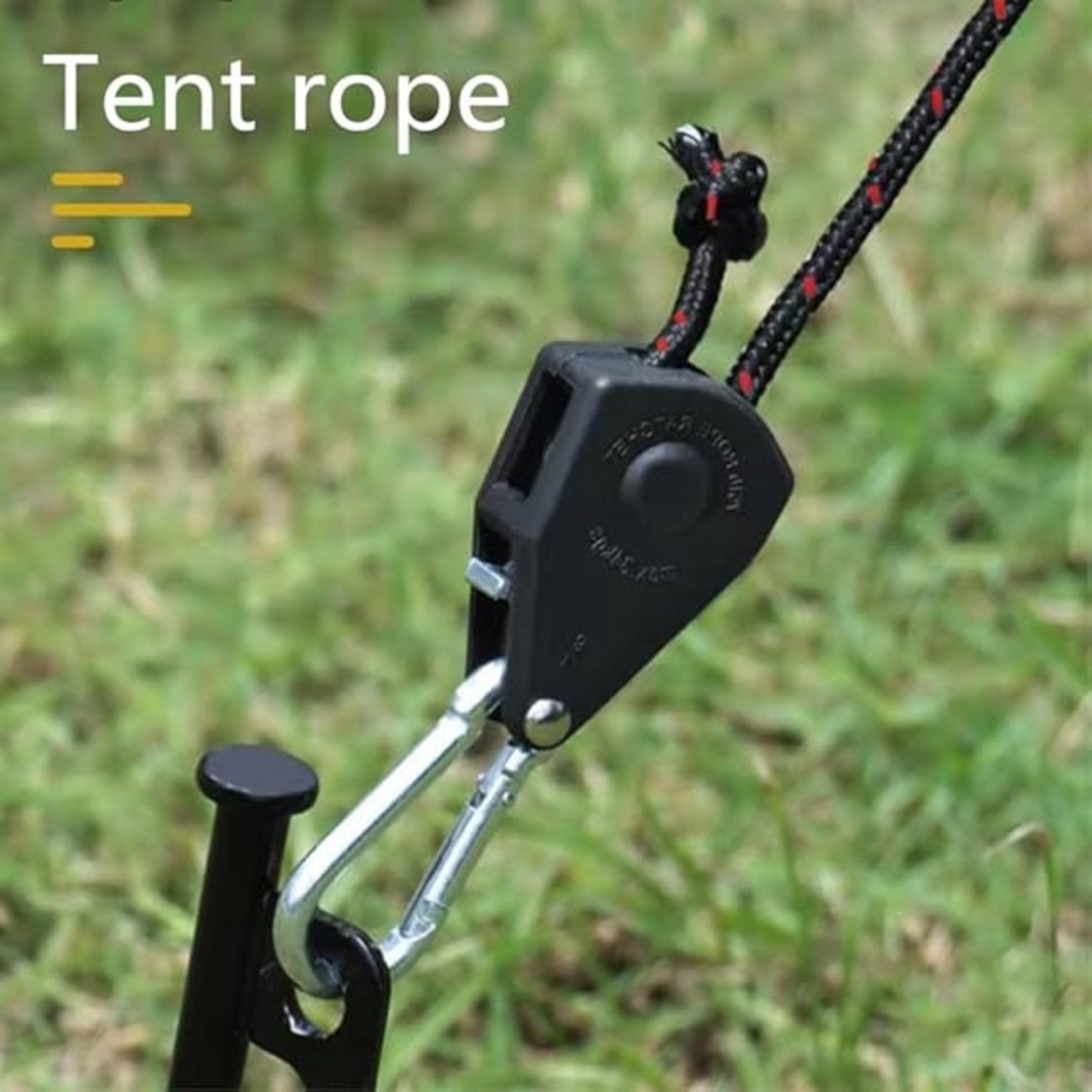 【長さを自由に調節可能】テントロープ の長さ を 自在金具のラチェット機構で簡単調整できます。