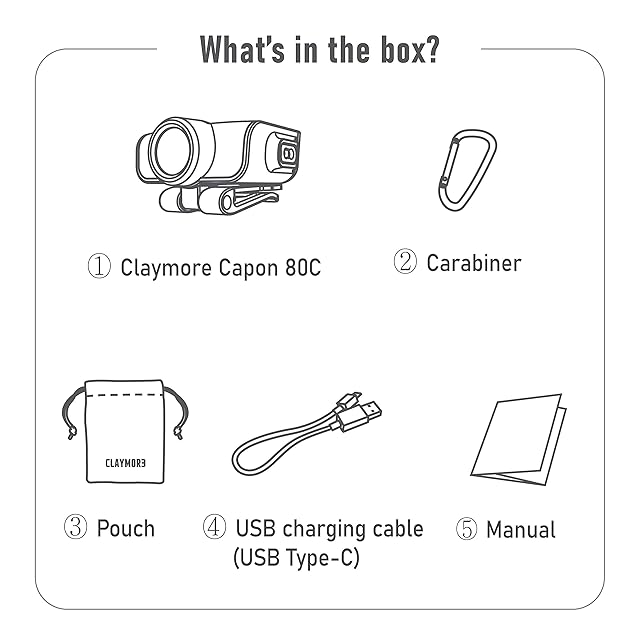 付属品:LEDライト本体 Micro USB充電ケーブル カラビナ1個 専用ポーチ