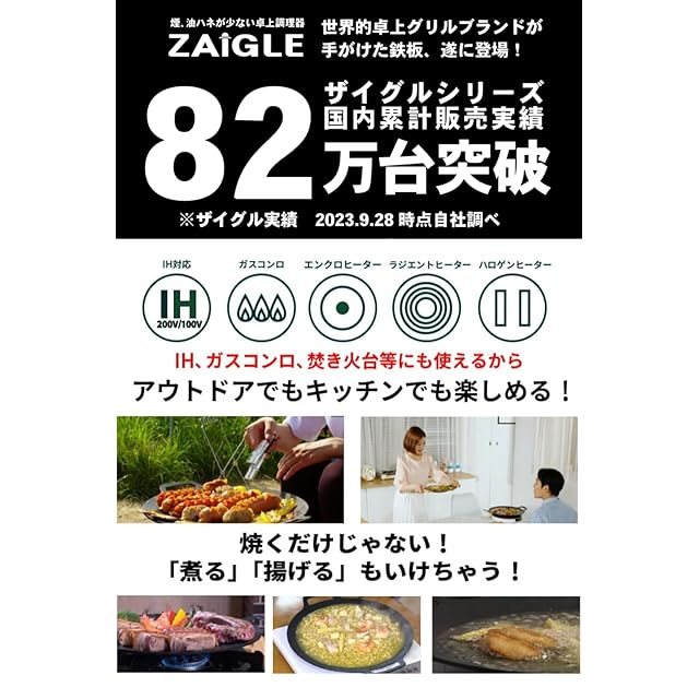 【TVで紹介されました】【正規品】ザイグルグリドル 30cm キャンプ 鉄板 アウトドア・キッチン兼用 付着防止コーティング 高い熱伝導効率 IH対応 直火対応 底面フラット形状で安定 | SMILE