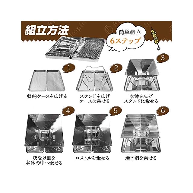Rikopin(リコピン) [CAMP本舗] バーベキューコンロ 焚き火台 収納ケース付 アウトドアコンロ 折りたたみ BBQコンロ 1台2役 2-4人用 ステンレス サイズ:31CM×31CM×20CM キャンプ用品 アウトドア用品 (ノーマル) | SMILE