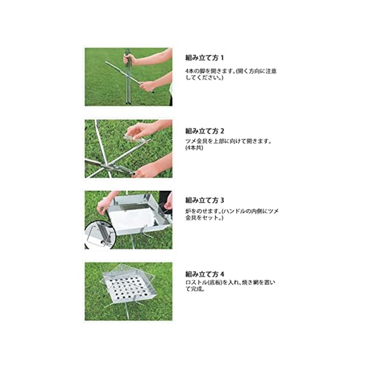 ユニフレーム ファイアグリル(683040) ・サイズ:(使用時)430×430×網高330mm、(収納時)380×380×70mm ・材質(炉/ロストル)ステンレス鋼、(スタンド/焼網)鉄/クロームメッキ ・重量:約2.7kg ・分散耐荷重:約20kg
