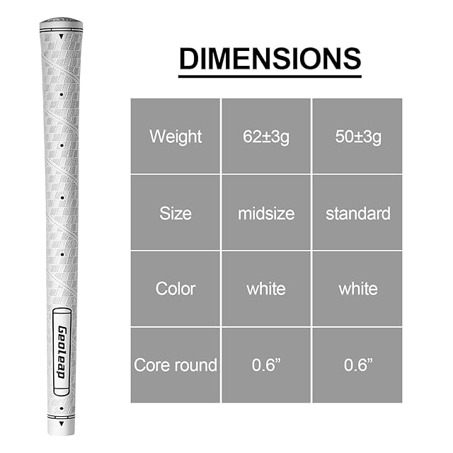 Geoleap Glory-M ゴルフグリップ 13個セット、メモリーポイント 手の配置を補助、滑り止め、ゴルフクラブグリップ、標準型/中型、5色オプション (スタンダード, ホワイト) | SMILE