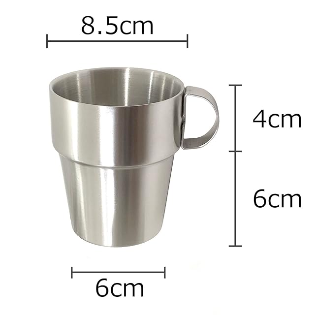 ✅カップサイズ(1つあたり):外径8.5cm(持ち手除く)×高さ9.5cm、容量300ml、重さ125g、材質:ステンレス201