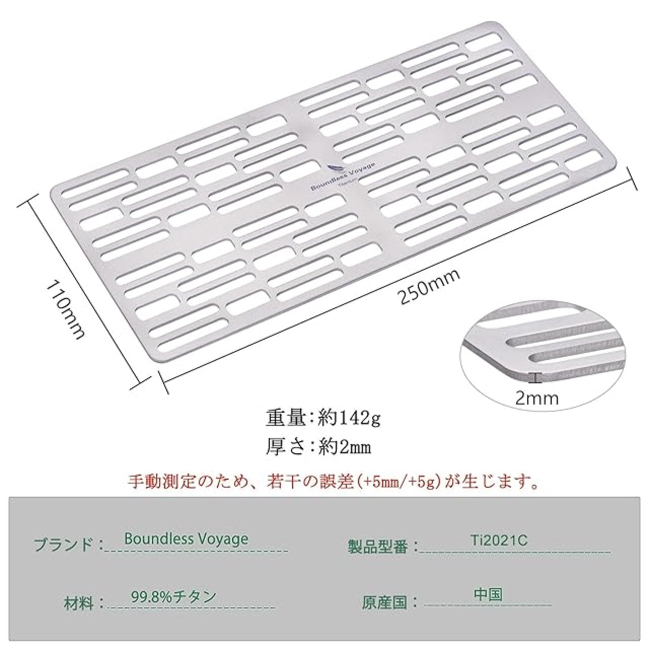 iBasingo 純チタン製 アウトドア 焼き網 バーベキューネット 1人用 小さい 250x110mm バーベキューグリル専用 バーベキュー 網 料理用 BBQ用 超軽量 旅行 A-Ti2021C