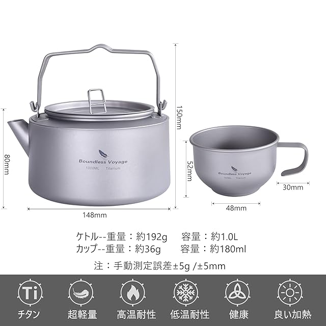 超軽量で耐久性:このケトルは、高品質の99.8%チタン金属製で、軽量、耐酸性、耐アルカリ性、耐食性、錆びない、強力な構造、優れた熱伝達効果を備えています。 チタンは飲料と全く反応せず、本来の味を保ちます。