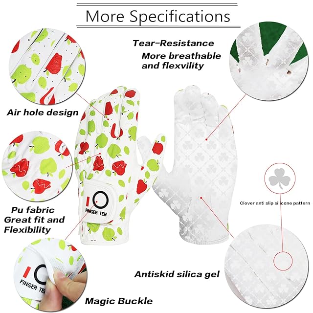 ゴルフ グローブ レディース 左手用 右手用 全天候型 握りしめている 滑り止め 1枚セット Weathersof (18-左手用1枚, グリーン&赤)