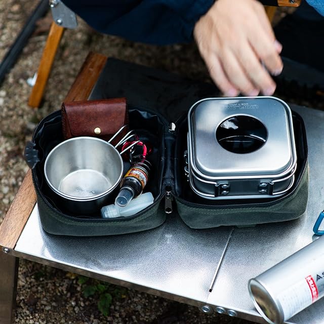 asobito(アソビト) クッカーケース 角型 オリーブ 調理道具 収納ケース 収納バッグ 天然素材100% こだわり 綿帆布ケース 本物志向 キッチン用品 アウトドア キャンプ