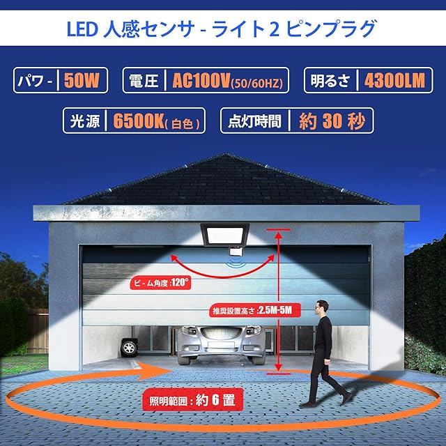 【高輝度&角度調整可能】:電源コード1.8メートル 50Wセンサーライトは72粒高品質SMDチップが搭載し、反射板:断熱材ーナノ、電圧は100Vに適しています。ライトのアルミニウム合金 ブラケットは180度設置できます。発光角度は120度で、隙のない照明を実現し、どんな場合にも活躍できます。