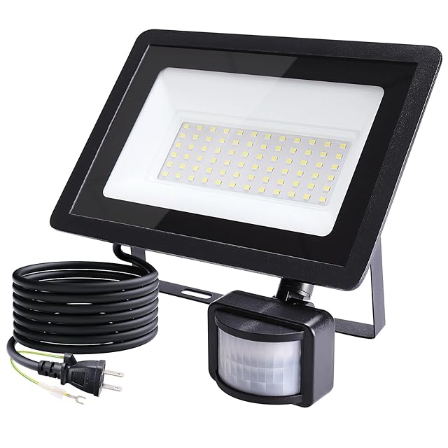 センサーライト LED投光器 50W コンセント式 屋外 人感センサー 作業灯 防犯ライト IP66 LED 昼光色 6500K 100V 適用 薄型 自由回転 高輝度 省エ ネ 庭 駐車場 玄関灯 廊下 防犯 PSE認証済 電源コード1.8メートル 2Pプラグ 人感投光器50W | SMILE