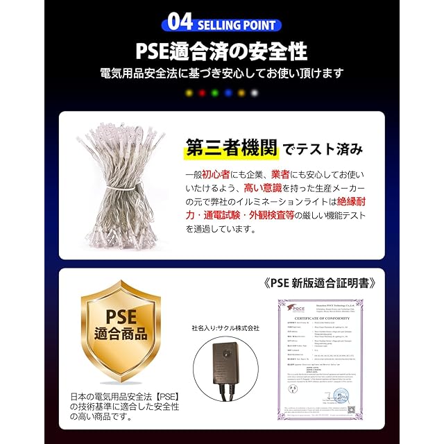 【電気安全法PSE適合品】本品はLEDイルミネーションライト、コンセントタイプ。経済産業省に事業届出提出済み、正規輸入品(輸入者表示あり)、有名ホテルや公園御用達。