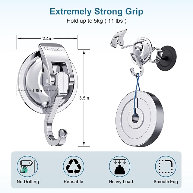 すごい吸着力で長持ち。 高品質のABS樹脂とドイツ製BASF TUPラバー製の吸盤パッドで、最大荷重13ポンドまで保持でき、何年も吸着が続きます。