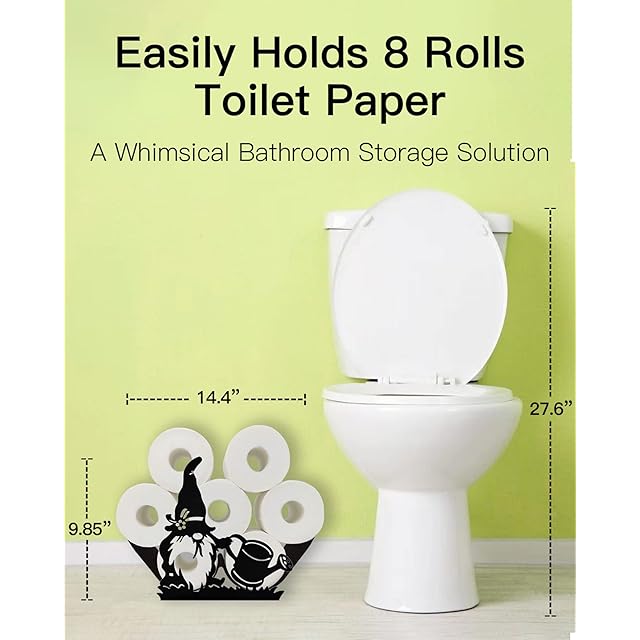 面白いノームトイレットペーパーホルダーシェルフ、バスルーム壁取り付けトイレットペーパー収納、予備8ロール用、ブラックメタル壁装飾ティッシュホルダー、バスルームトイレットペーパーオーガナイザー。 | SMILE