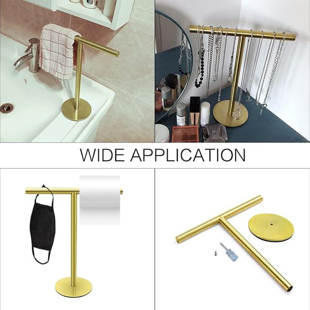 【錆びにくくゴールドの表面】:ハンドタオルホルダースタンドは厚みのあるSUS304ステンレススチール素材で作られており、湿った環境での腐食や錆から保護し、耐久性を高めます。 ゴールド仕上げの表面は、シミや傷に強く、完璧な外観を確保し、お手入れも簡単なので、日常使用によるメンテナンスに費やす時間と費用を削減できます。
