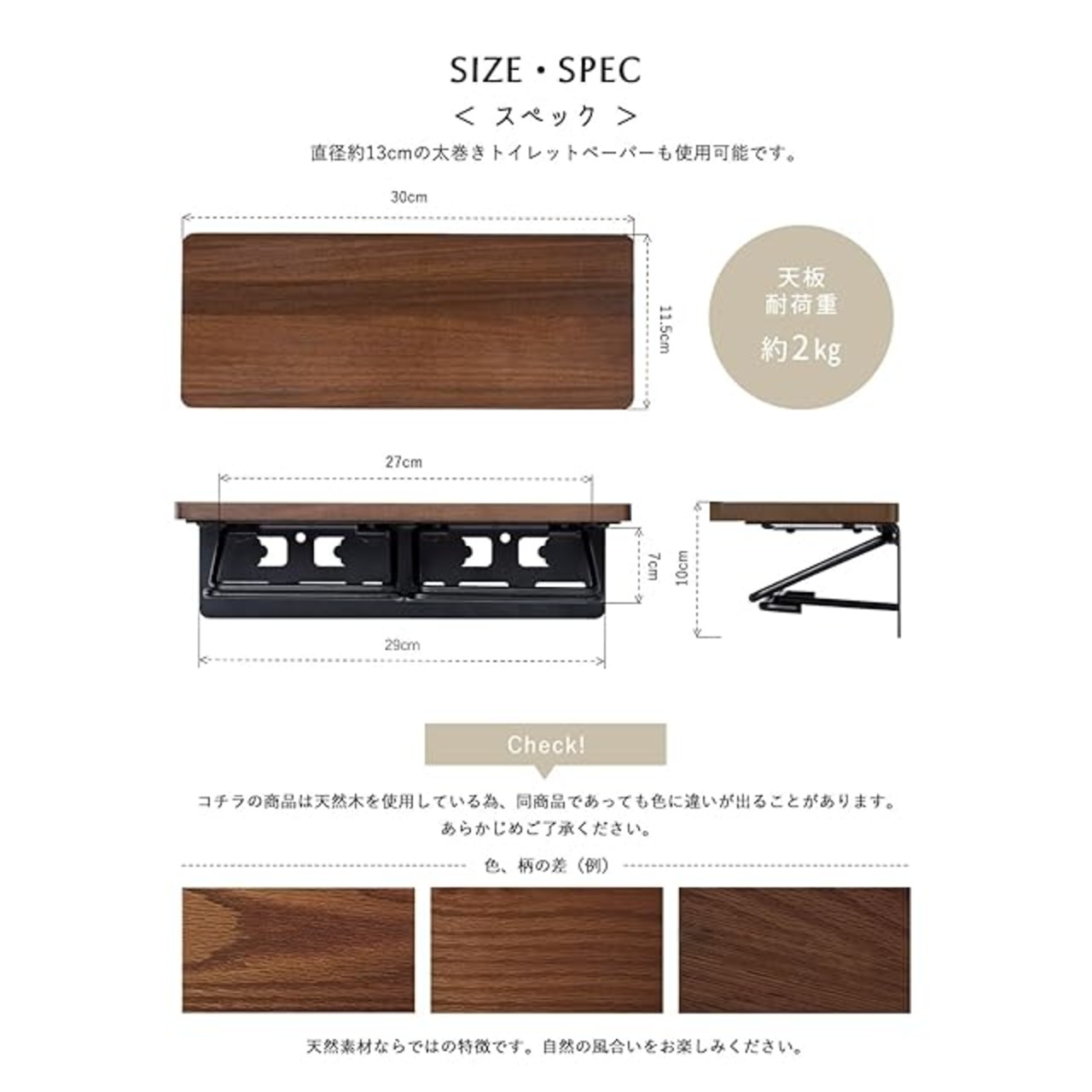 SELENEFF トイレットペーパーホルダー 2連 棚付き 木製 ダブル 北欧 木目 トイレットペーパー ホルダー スマホ置き 天然木 簡単設置 ツイン ペーパーホルダー (ナチュラル) | SMILE