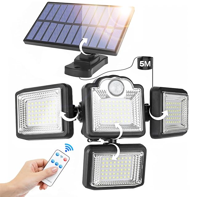 LAOSEP ソーラーライト センサーライト 屋外 分離型 一体式【300°4面発光・5Mケーブル・3000ルーメン・360°角度自由調整】人感センサーライト リモコン付き 3つ知能モード 屋内・屋外使用可 IP65防水 防災対策 自動点灯 大容量電池 ガーデンライト 屋外ウォールライト 壁掛け式 玄関/駐車場/車道/ガレージ 防犯対策 停電・災害時に適用 太陽光発電 電気代0 (分離式) | SMILE