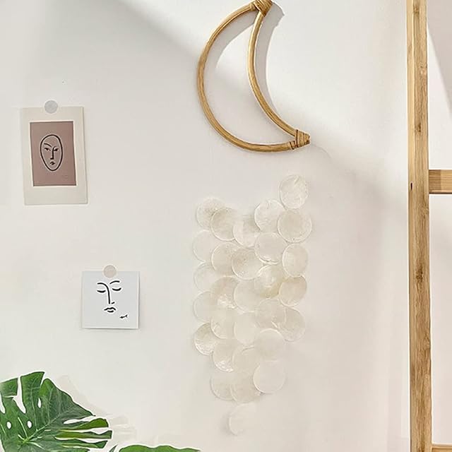 ムーンシェルウィンドチャイム;素材:シェル、木製サークル;サイズ:43 * 22 * 9.4 * 10.6cm;アプリケーション:リビングルーム、書斎、玄関、バルコニー、ショップなど。