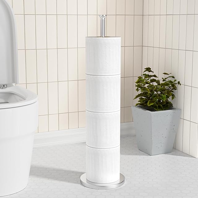 省スペース:サイズ:D 6.6インチ x 幅 6.6インチ x 高さ 24.25インチ。 この自立式トイレットペーパーホルダーは場所をとらず、どんなバスルームや洗面所にも最適です。 トイレットペーパーホルダーを持ち上げやすいように、ヘッドにループが付いています。