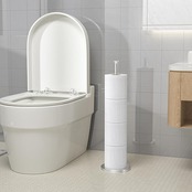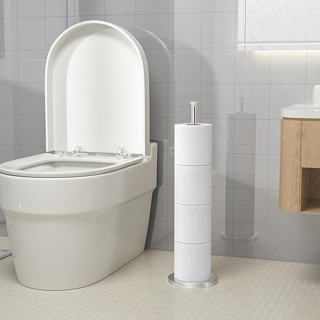 4ロール容量: この自立式トイレットペーパーホルダーは小さくても頑丈で、厚さ6インチのキング/ジャンボトイレットペーパーロールを4ロール収納できます。 トイレットペーパーがなくなる心配はもうありません!