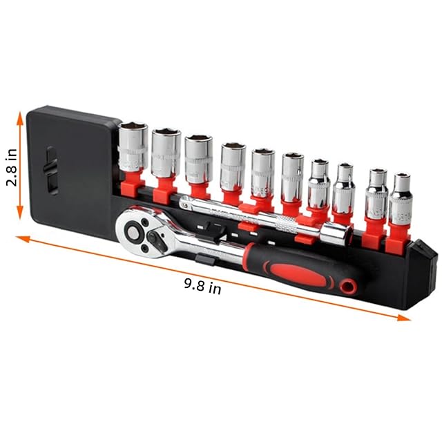 10個の収集ホルダーにCr-Vソケット4、5、6、7、8、9、10、11、12、13mm、10mm、10個のCr-Vソケットが含まれています。各ソケットには、使用と整理がより簡単にできるサイズのラベルが付いています。