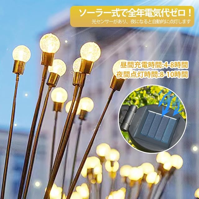 【幅広い用途】 庭園、鉢植え、花壇、園芸、玄関先、庭先、車道、歩道、芝生、ガーデニングや、玄関ポーチ通路などの屋外照明とデコレーションに最適です。 配線工事は不要で、日当たりの良い場所に挿すだけで、美しいホタルの光を楽しむことができます。 新築祝、ご家族やご友人へのプレゼントにも最適です。何か問題や故障が発生した場合は、いつでもお気軽にご連絡ください。