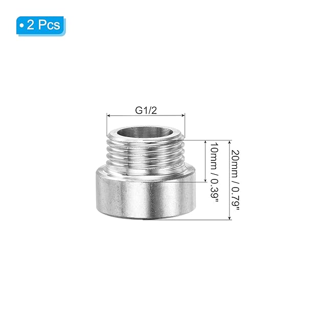 カラー:シルバー;素材:201ステンレス鋼;チューブの長さ:20mm / 0.79インチ;スレッドの長さ:10mm / 0.39インチ;直径:26mm / 1.02インチ;スレッドサイズ:G1/2メスからG1/2オス;パッケージ内容:シャワーヘッド延長アーム2個セット