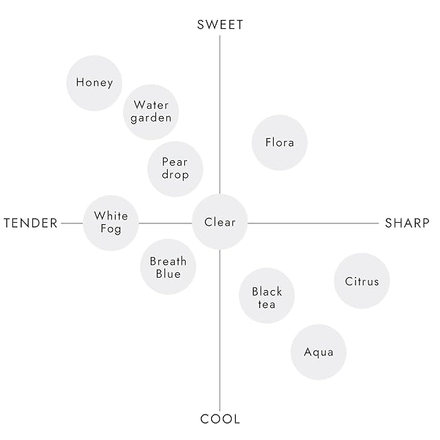 洋ナシを主役にし柑橘類と合わせた爽やかなトップから、キンモクセイ、マグノリアをミドルにブレンドしたおしゃれな印象の香り。シダーウッドとホワイトムスクが甘さの中にも落ち着きのある香りへと昇華させています。