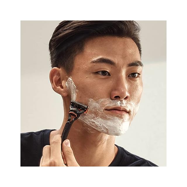 スタビライザー付極薄5枚刃 ジレット史上、最高の極薄刃で肌へのひっかかりを最小化。19%の肌への圧力軽減**。 **カスタムプラス3 との比較