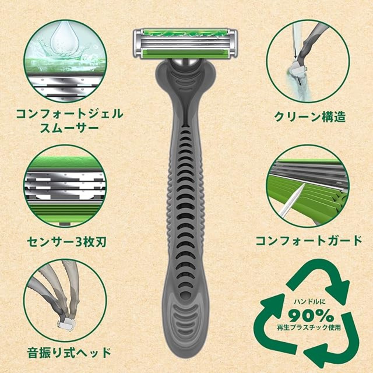 ジレット カスタムプレミアム リサイクルド 使い捨てカミソリ 10本 深剃り センサー3枚刃 コンフォートジェル 髭剃り カミソリ 男性 メンズ