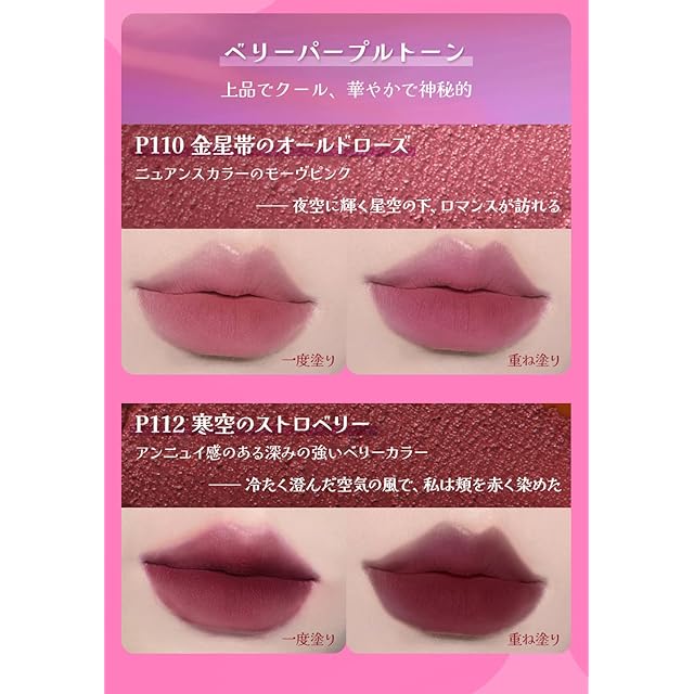 【マットリップのふっくら効果】 暖かみのあるサンセットカラーをチョイスして、トーンオントーンメイクの雰囲気を簡単に演出。 colorkey に従って、唇の間でロマンスと自由を感じてください。 究極のマットでふんわりミストメイクアップ効果を生み出し、リップラインを簡単に隠し、唇をより立体的でふっくらとします。