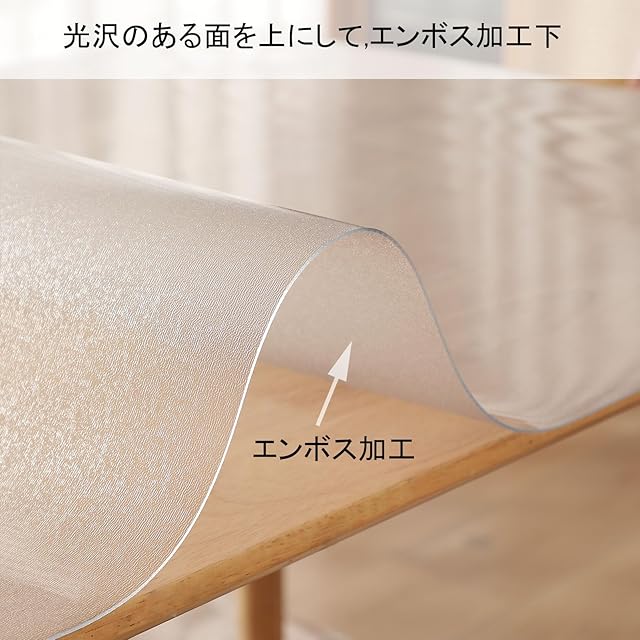 テーブルクロス 円形 透明 エンボス加工 気泡なし:光沢のある面を上にして,エンボス加工 下,大理石テーブルでもガラステーブルでも気泡は残りません.プラスチック臭が少ない。あらゆる材質のテーブルに適しています