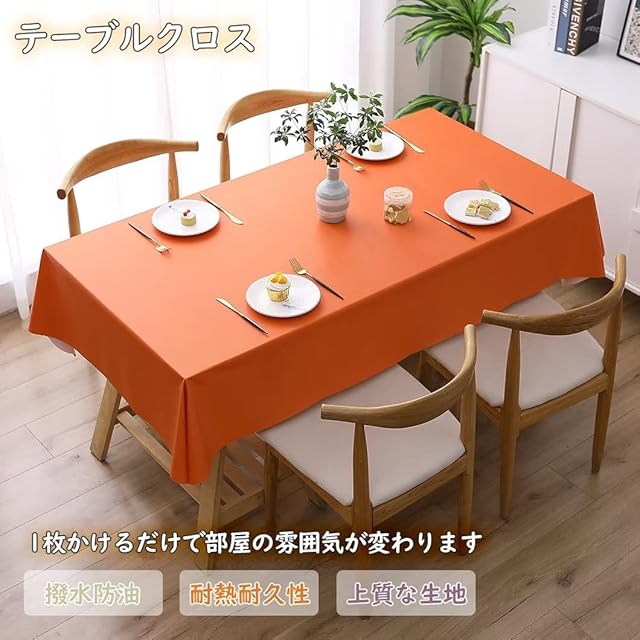 テーブルクロス ビニール 撥水 おしゃれ 長机用 テーブルカバー 防水 防油 汚れ防止 耐久 テーブルマット 耐熱 ずれにくい PVC製 無地 長方形 北欧 食卓カバー 防カビ ダイニング 手入れ簡単 家庭用 業務用 多用途 オレンジ 幅120cm*丈170cm 1枚 HIMENO | SMILE