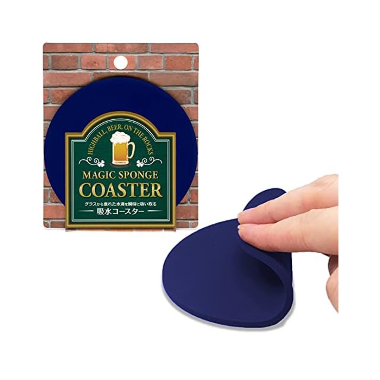 アイオン コースター 吸水 スポンジ 丸 ネイビーブルー 直径9cm コップの底にくっつきにくい 滑りにくい 割れない 欠けない 洗える 756-NB