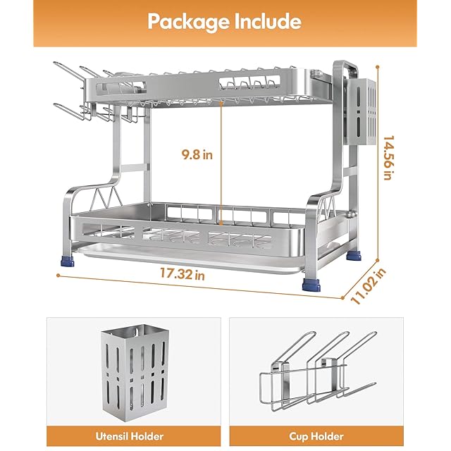 BOOSINY 水切りラック 水切りカゴ 食器洗いカゴ 食器 水切りカゴ 洗い物カゴ 台所 包丁スタンド 食器入れ 自動排水 自然乾燥可能 組み立て簡単 食器 水切り 食器置き 洗い物ラック 水切りバスケット ホワイト 2段式