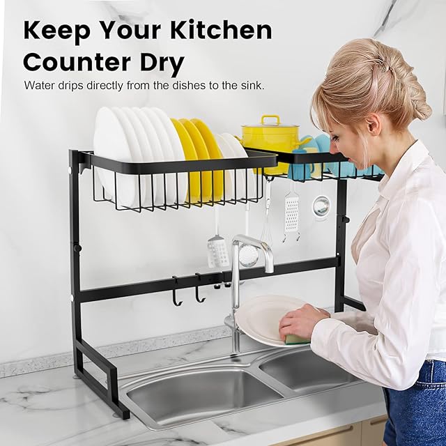 錆びない丈夫なラック-シンクの上の水切りラックは、201ステンレス鋼、防錆で、最大約36kgの食器と調理器具を置くことができます。水はシンクに落ちるため、カウンタートップを清潔でキレイな状態に保てます。カウンタートップの上でラックが揺れないよう、底には2つのゴム製吸盤が付いています。高品質で頑丈な水切りラックは、あなたのキッチンに最適です。