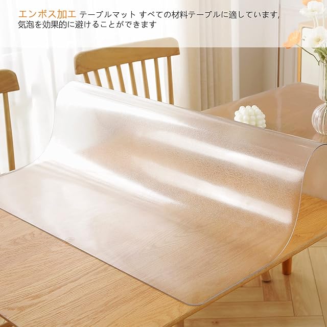 テーブルマット 透明 エンボス加工 気泡なし:光沢のある面を上にして,エンボス加工 下,大理石テーブルでもガラステーブルでも気泡は残りません.味がなく、収縮しません 傷や汚れから保護できます