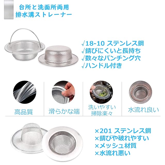 【耐久性があった頑丈な材質、滑らかな端のデザイン】流し用浅型ゴミカゴは耐用性に優れた18–10ステンレス鋼で作られ、変形しにくく錆びにくい特徴がある。それとも、ステンレス製品はぬめり、カビと臭い匂いが防げます。排水口の周りが清潔感を保ちます。さらに、滑らかな端のデザインで、手指を傷つきません。