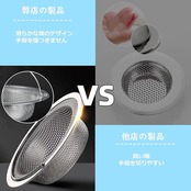 【ハンドル付き、洗いやすい】ハンドル付きがあるので、排水口への取り付け、取り外しが簡単、さっとゴミが捨てられます。さらに、ゴミに直接触れずにゴミ捨てができて衛生的です。パンチング加工で、網形のゴミ受けより目詰まりしにくく、髪の毛やゴミを取れて綺麗に掃除します。汚れた場合、食器洗剤と水で簡単に汚れが落とせます。