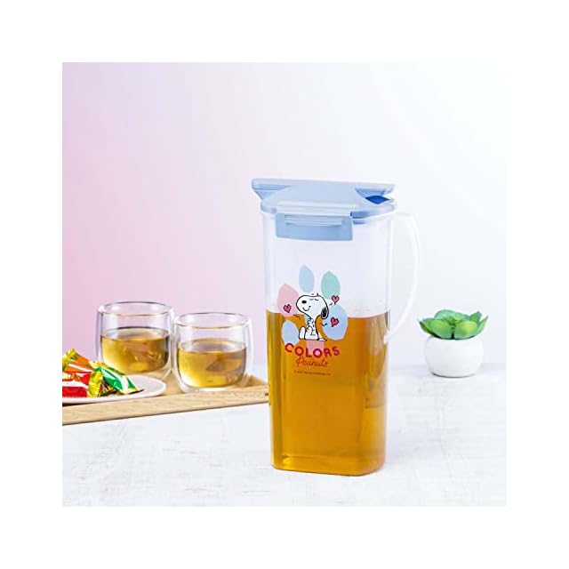 スヌーピー柄のスクエアタイプの冷水筒2.1L。熱湯を注いでもOKです。