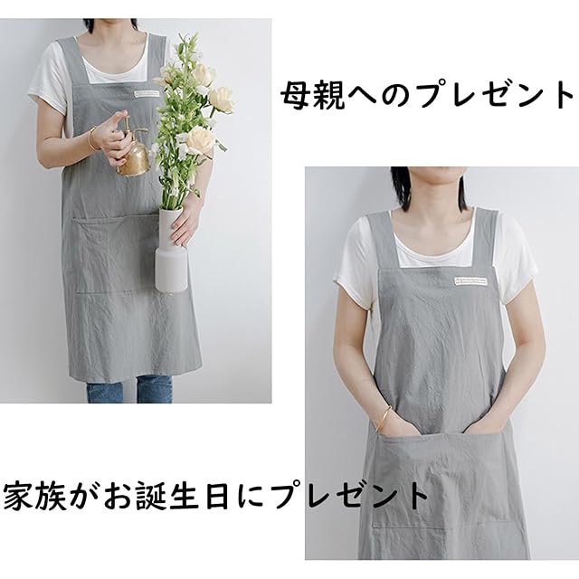 【着脱が簡単で被るだけがいい】エプロンはシンプルできれいで、紐を結ばなくて良いので、着脱がとても便利で、かぶるだけでよいので楽。料理や家事の際に非常に便利です。食材の飛び散りや汚れから服を守り、作業をより快適にします。後ろが自由に開くから多少太っても、厚着してもキツくならないのも良い。