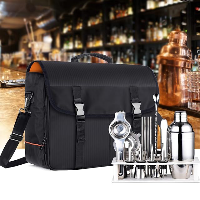 パッド入り持ち手と調節可能なショルダーストラップ付きで、外出や旅行時、バーテンダーキットを運ぶのに便利なバーテンダーキャリーバッグです。寸法:40.7cm x 16.5cm x 33.1cm