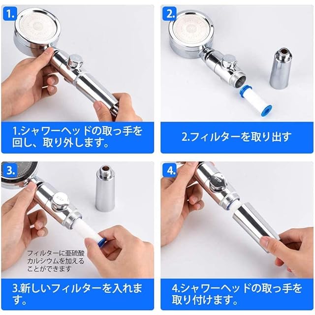 【2021年度最新・塩素除去機能付・浄水シャワー】強力な浄水機能を搭載した肌に優しいシャワーヘッドとなっています。亜硫酸カルシウム&活性炭&浄水カートリッジ付、シャワーヘッドの下部に取り付けるまたは、ホース根元にセットする浄水カートリツジで、 肉眼では見えないものや堆積物を取り除くだけで なく、水道水に残留された塩素を徹底的に除去できます。肌荒れや髪の毛の傷みを予防します。 肌への塩素刺激を抑えたやさしいシャワーへと進化しました。交換頻度は3 ~ 5カ月。具体的な判断は主に水質です。