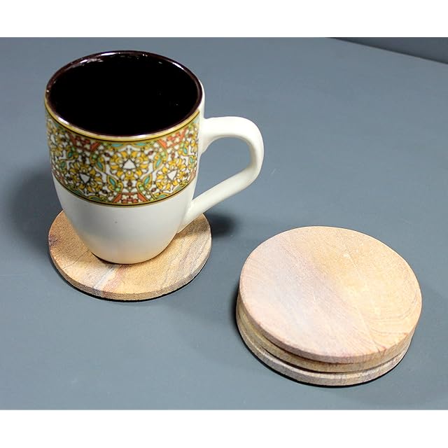 レインボーサンドストーンで作られた手作りの正方形のストーンティーコースター。