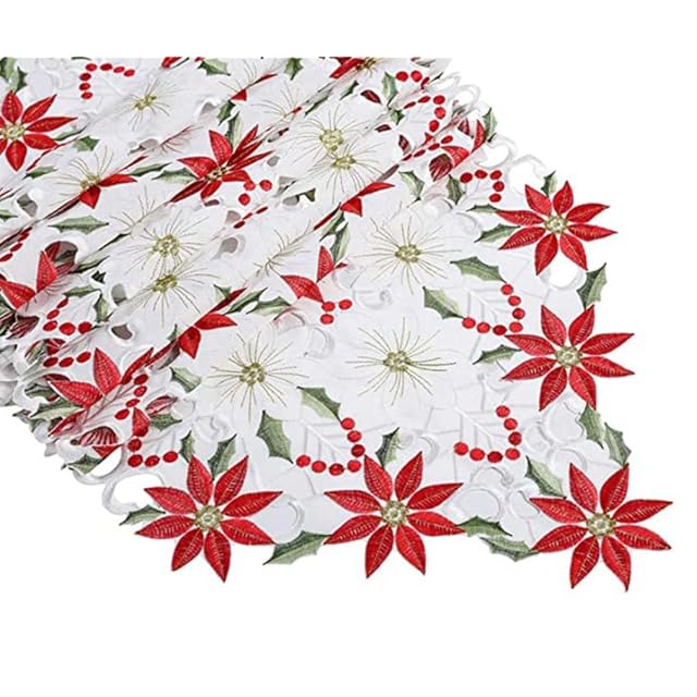 Flushbay クリスマス 飾り テーブルランナーおしゃれ 欧風 テーブルランナー 赤 花柄刺繍 食卓飾り プレースマット お食事マット 防汚 断熱 滑り止め 丸洗い175cm*38cm | SMILE